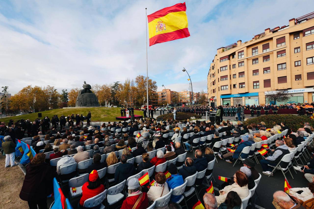 La Glorieta de La Menina en Alcobendas fue el escenario de un acto solemne por el Día de la Constitución, presidido por la alcaldesa Rocío García. Se izó la bandera española y se reconoció a las fuerzas de seguridad. El evento concluyó con una degustación de productos típicos regionales.