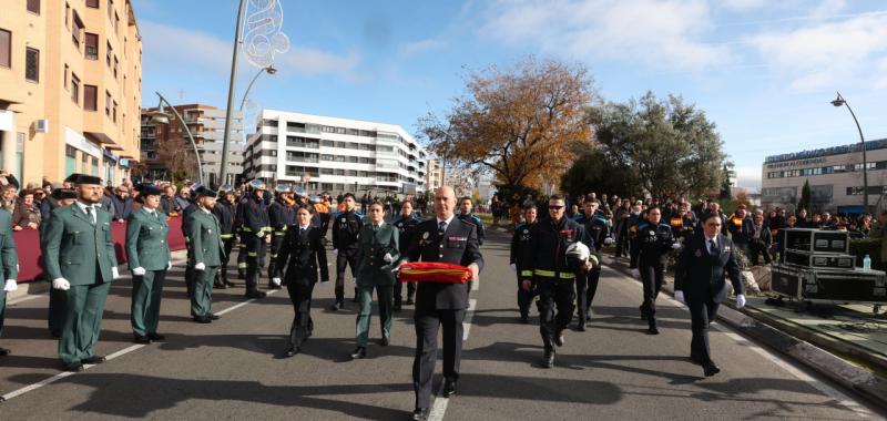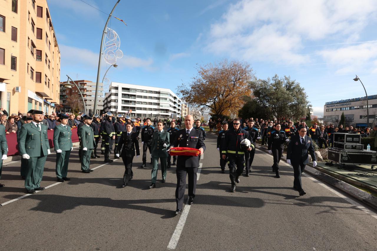 El evento, que reunió a miembros de la Policía Nacional, la Guardia Civil, el Cuerpo de Bomberos y Protección Civil, dio inicio con el clásico izado de la Bandera de España. Este acto se llevó a cabo al ritmo del Himno Nacional, que fue interpretado por la Banda Municipal de Música de Alcobendas, la cual también ofreció diversas piezas musicales de estilo militar.