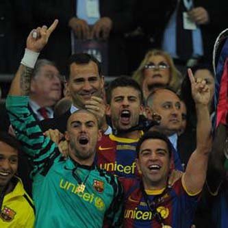 El Barça de Guardiola consagró ayer su ingreso en el olimpo de los grandes equipos al lado del Madrid de Di Stéfano, el Ajax de Cruyff, el Liverpool de Paisley, el Bayern de Beckenbauer y el Milan de Sacchi. No se entendería este equipo sin la dirección de Guardiola, aunque tener a Messi y compañía ayude y mucho. Pero la prueba definitiva de que este equipo no basa su éxito sólo en lo que pasa sobre el césped, sino en lo que pasa durante todo el día llegó en el momento de recoger la Copa, cuando el elegido para alzar el trofeo no fue ni Puyol, ni Xavi, ni Valdés. Ni siquiera Messi, que había sido hombre del partido. La cuarta, la de la gloria, la del volcán, la recogió Eric Abidal. Símbolo de la resistencia de este equipo. Y si tienen dudas, observen cómo celebraron la Copa, todos cogidos de la mano y jugando con los aspersores que se encendieron por sorpresa en el estadio de Wembley.
