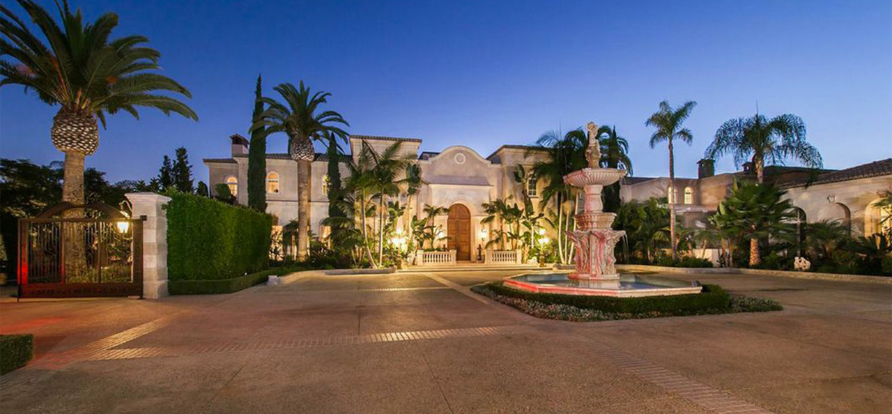 Situada en el icónico barrio de Beverly Hills (Los Ángeles), el Palazzo di Amore ocupa una superficie de 100.000m2. De estas diez hectáreas, cinco mil metros cuadrados son dedicados a espacio habitable. Distribuida en varios edificios, la vivienda alberga 12 dormitorios y 23 cuartos de baños. Otro referente de la casa es un precioso viñedo con más de 400 cepas de uvas syrah y cabernet. Además, la propiedad dispone de su propio centro de entretenimiento que incluye una bolera, un teatro y sala de cine con 50 asientos de capacidad y su propio vestidor, así como una discoteca y una pista de baile giratoria. Tampoco falta un spa de estilo turco, una piscina de 38 metros de largo, un salón comedor para atender a 250 invitados y una bodega con capacidad para 3.500 botellas.