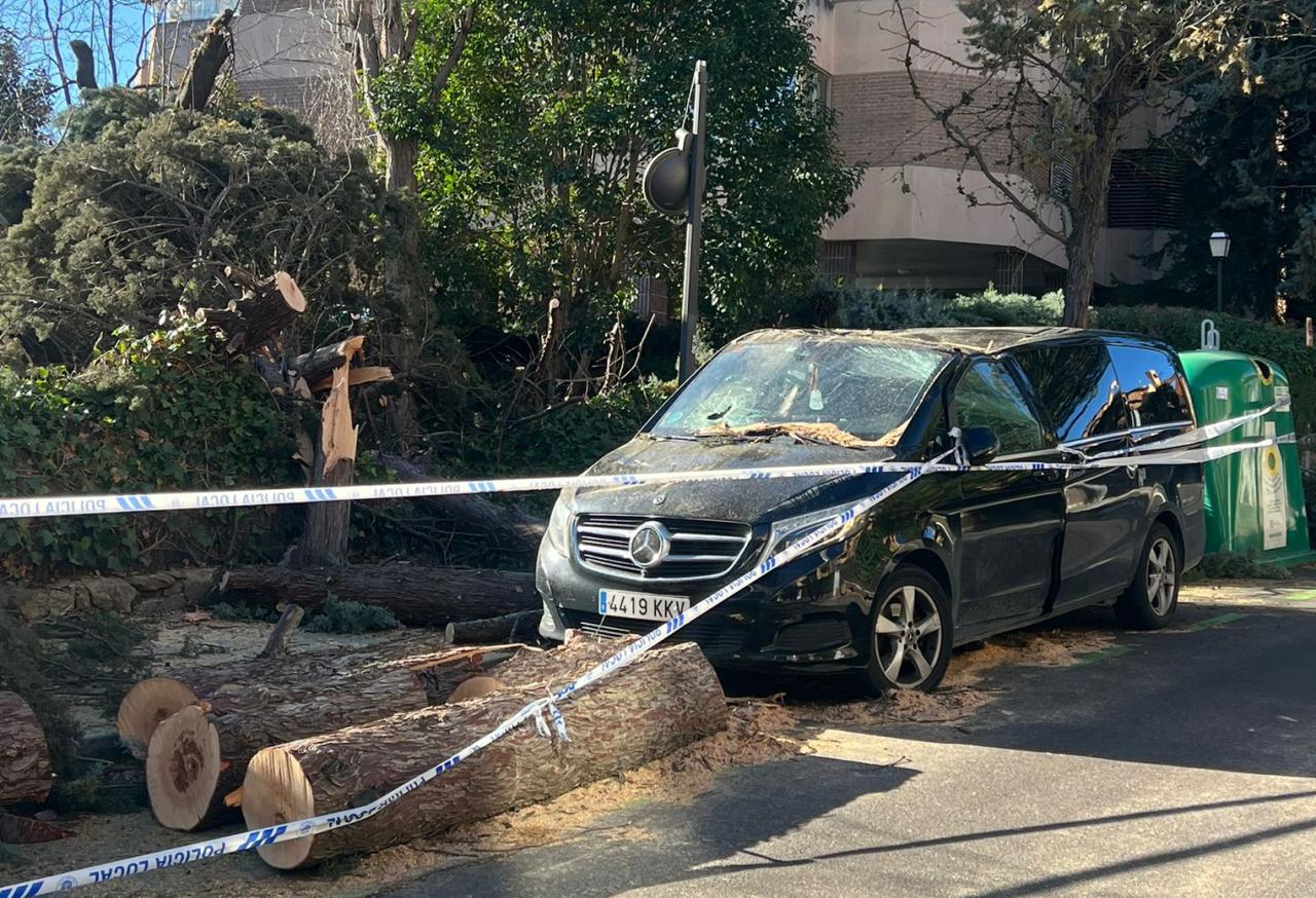 Las zonas más afectadas incluyen los distritos de Chamartín, Retiro y Moncloa-Aravaca, donde varias ramas impactaron sobre vehículos estacionados.