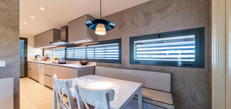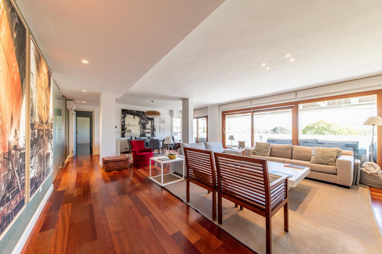 Al entrar, a mano izquierda nos encontramos con una cocina con office amueblada y equipada con todos sus electrodomésticos, con cuarto de lavandería y tendedero. Habitación de servicio con baño entrando por la cocina. Gran salón abierto dividido en dos espacios, salón y comedor, con salida a la gran terraza y con gran luminosidad. El pasillo que distribuye las habitaciones tiene dos habitaciones a la derecha con vistas a la terraza y un baño en frente para ambas y al fondo la habitación principal con su baño dentro