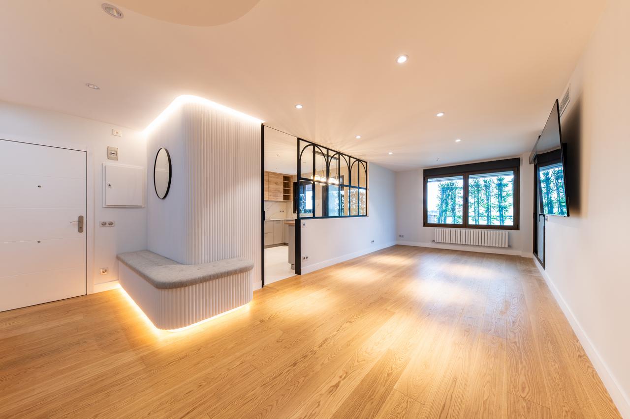 La vivienda incluye dos plazas de garaje y trastero. El piso cuenta con calefacción radiante suelo, que aporta eficiencia y comodidad y aire acondicionado por conductos.